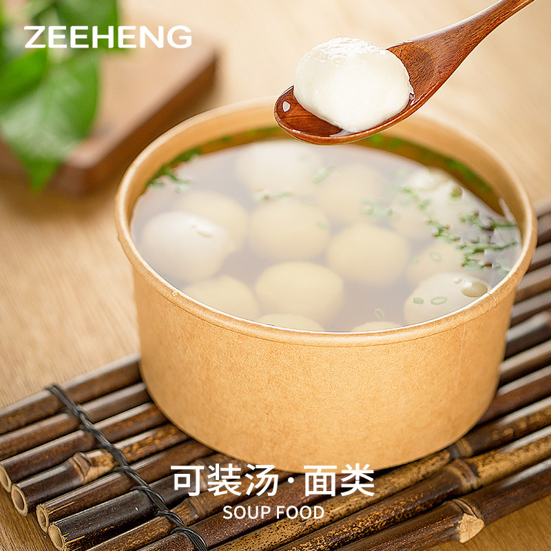 ZEEHENGは,食品容器のニーズにぴったりのクラフト紙碗の製品カスタマイゼーションサービスを提供しています. 品質と耐久性を保証する中国産のモデル番号750MLです.このクラフトボウルを自分のロゴでパーソナライズできますこの紙のソースカップは 漏れを防ぎ 快適な体験を 提供しています検査用のサンプルが用意されている.